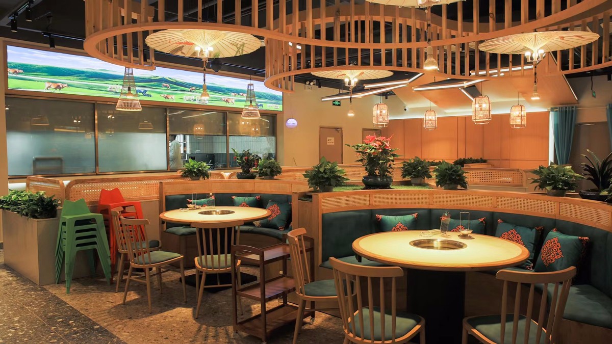 潮牛鮮生位于星沙天虹商場(chǎng),主打潮汕風(fēng)味鮮煲火鍋。選用潮汕風(fēng)味鮮湯鍋底,新鮮的牛肉,讓客戶在吃到美味的同時(shí)享受實(shí)惠的價(jià)格。實(shí)現(xiàn)“實(shí)惠看得見,鮮味呷得出”的品牌理念。夢(mèng)工場(chǎng)為其第一家旗艦店提供專業(yè)的裝修服務(wù)。